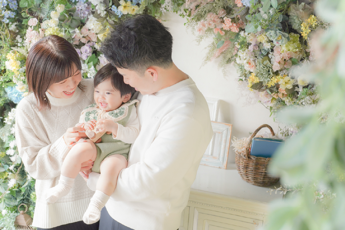 人見知りや場所見知りの子でもリラックスして撮影ができるプライベート空間。パパママと一緒に経験豊富な女性スタッフがお子さまの体力やご機嫌に合わせて撮影を進めていくので安心。 お気に入りのおもちゃやおやつをぜひお持ちください。